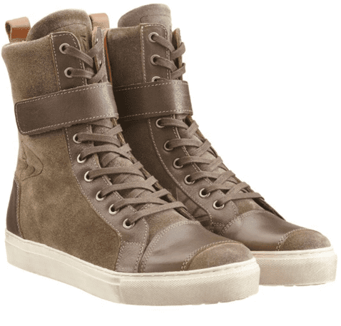 The Triumph Foxton shoe a hi-top trainer-style motorcycle boot made from a combination of suede and leather.